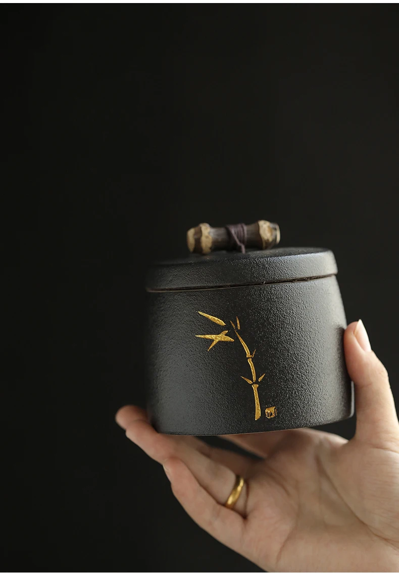 Отзывы о Черные керамические чайные канистры LUWU с бамбуковой росписью контейнер для