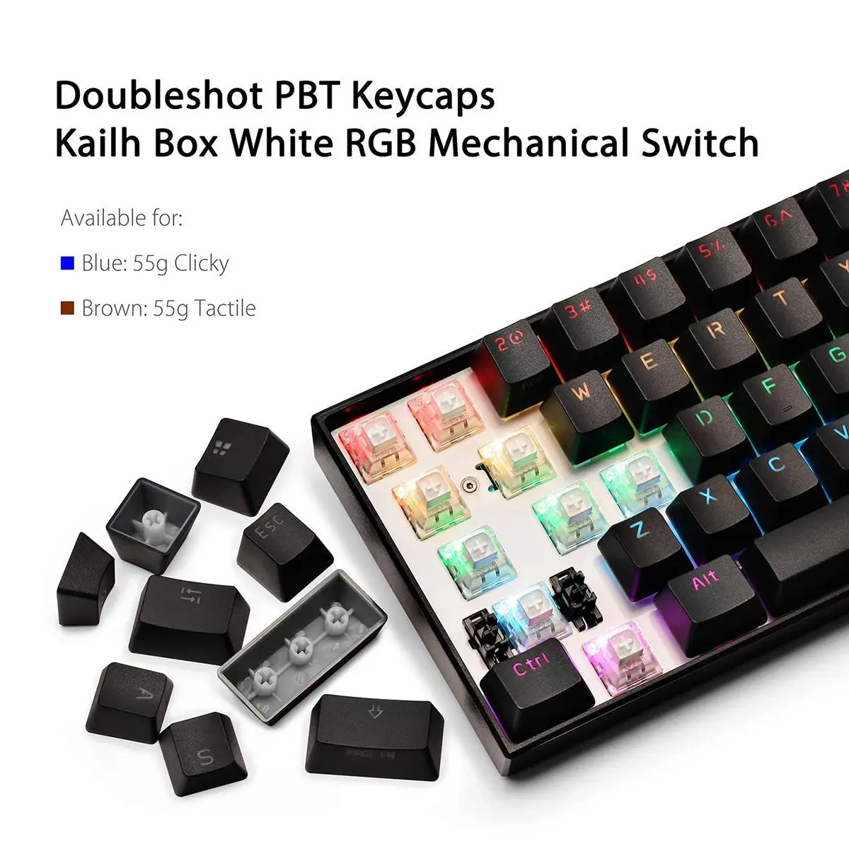 -Keycaps PBT. Doubleshot PBT keycaps, прочный и не легко блестит, как ABS keycaps.