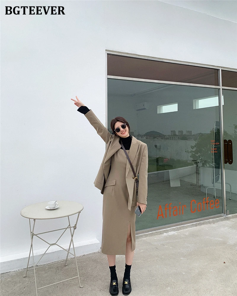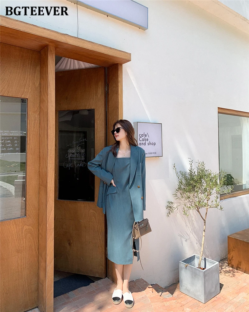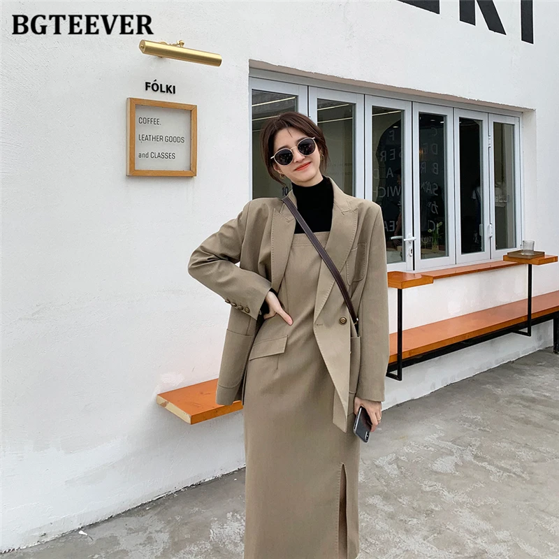 Отзывы о BGTEEVER Elegant OL Style Women Dress Suits Double Breasted Blazer & Sleeveless Side Split Pencil Female 2 Pieces Set 2021 | Женская