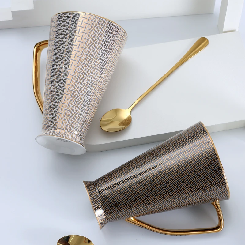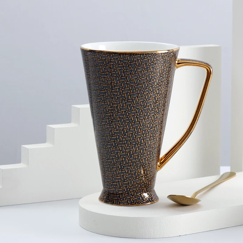 Высококачественный костяной фарфор с классическим рисунком и золотыми ручками, это не просто Изысканная кофейная кружка, но и великолепное украшение для вашей комнаты/дома!