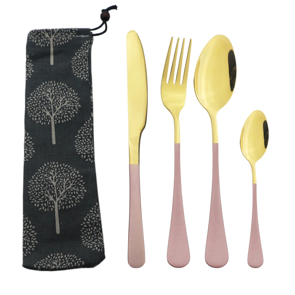 Отзывы о Розовый Золотой столовый нож вилка ложка Нержавеющая сталь установлен на