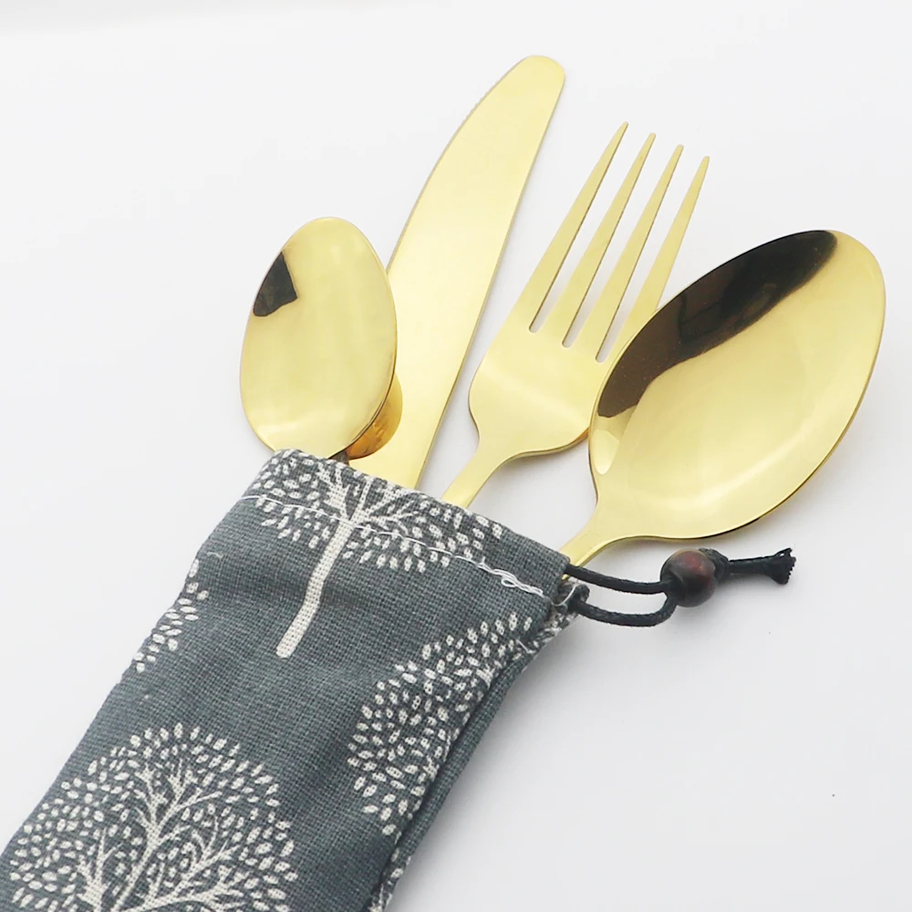 Всего 5 штук в комплекте,В комплект входит 1 нож для ужина 1 ложка для ужина 1 вилка для ужина 1 чайная ложка 1 сумка.