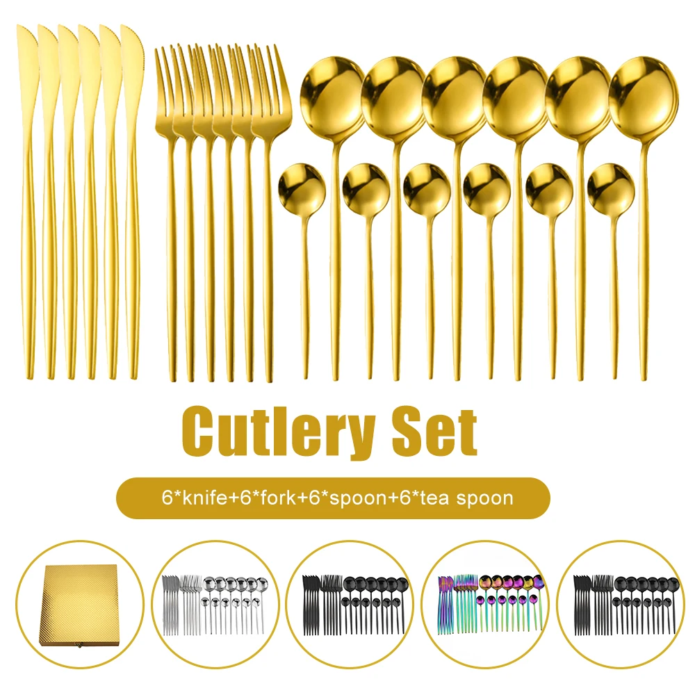 Отзывы о Набор золотых столовых приборов из нержавеющей стали 24 шт. | Дом и сад