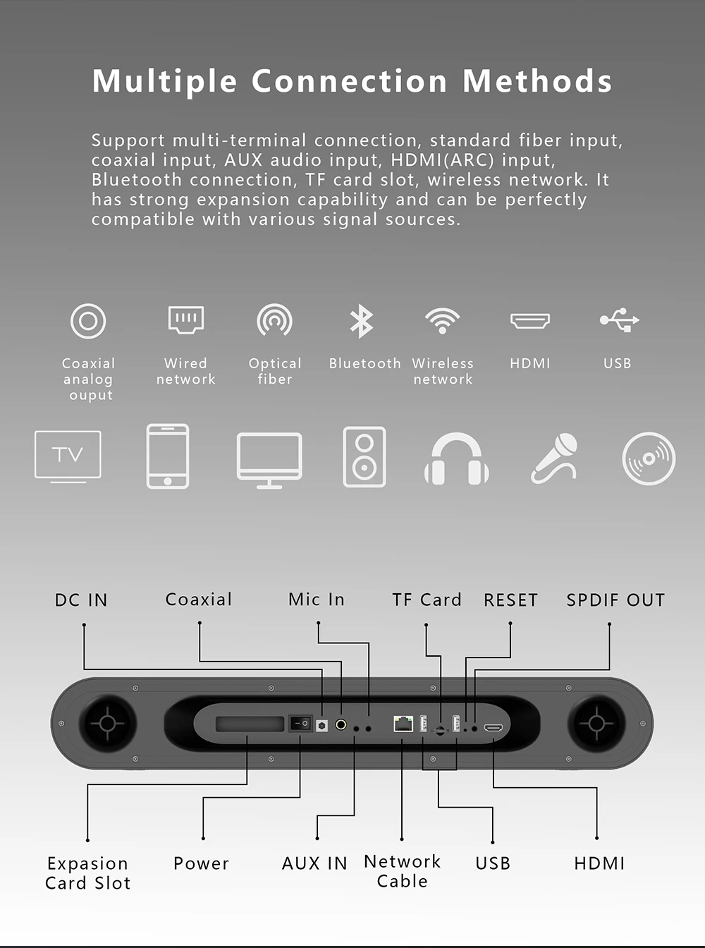 Встроенный 4K потоковый медиаплеер домашний кинотеатр звуковая система Atmos Саундбар