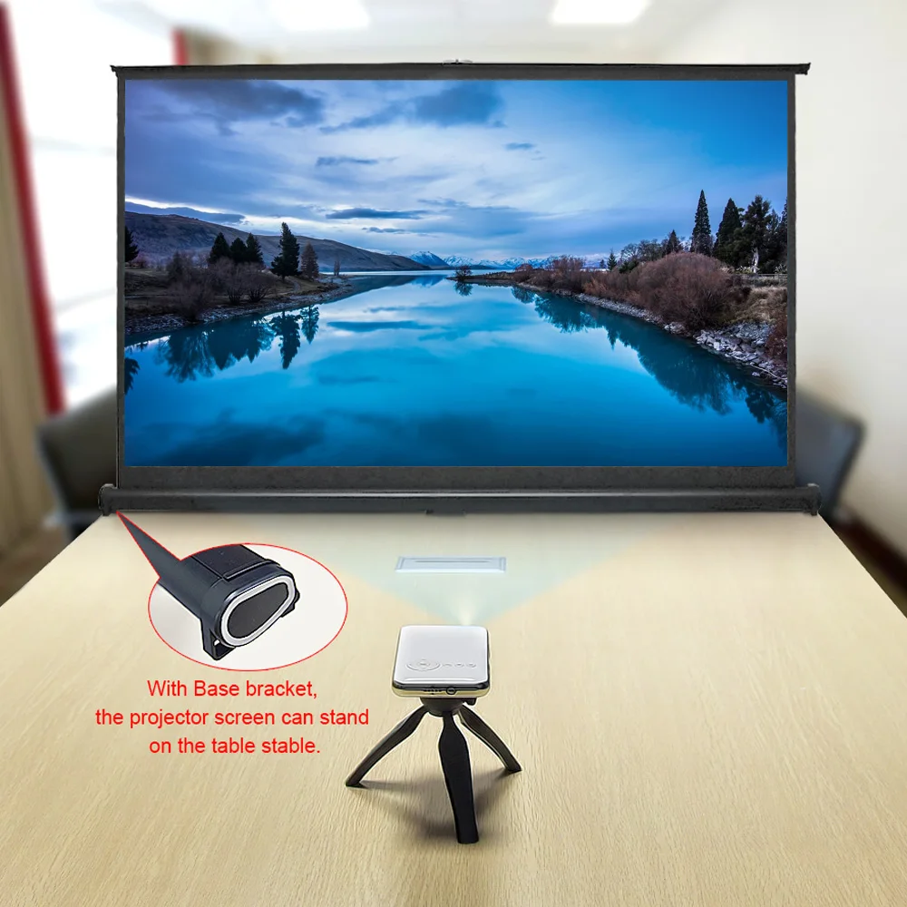 С базовым кронштейном, экран проектора может стоять на столе стабильно