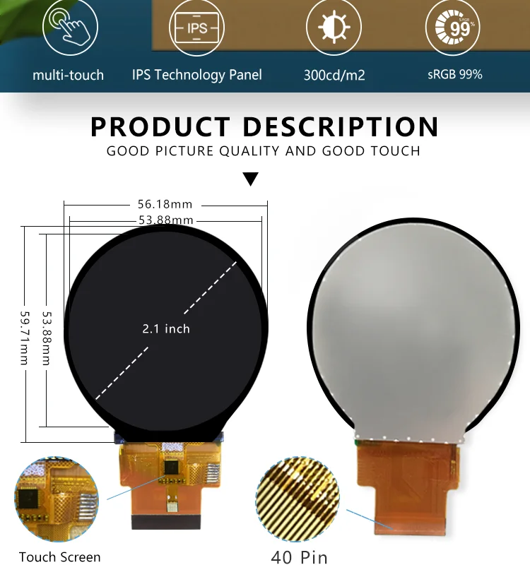 Отзывы о 2 1 дюймовый круглый 480X480 MIPI IPS ЖК-дисплей емкостный сенсорный модуль монитор экран