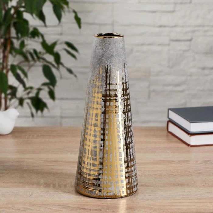 Ваза керамика настольная "Беата" сетка, 4,5х10х24 см, серо-золотой 5201918