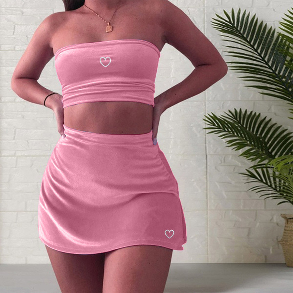 3. Горячее бурение в форме сердца,Верх трубкиМини-юбка с высокой талией,Тонкий крой.Он имеет vОчень лестно обрезается на теле,Покажите свои изгибы с шармом.ATtractive стиль иС открытыми плечамиДизайн, сделает вас очаровательным и сексуальным.