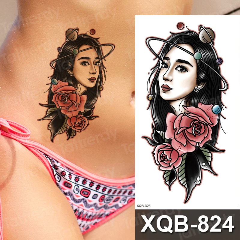 Отзывы о Большой цветок розы временные искусственные татуировки сережки-гвоздики дизайн