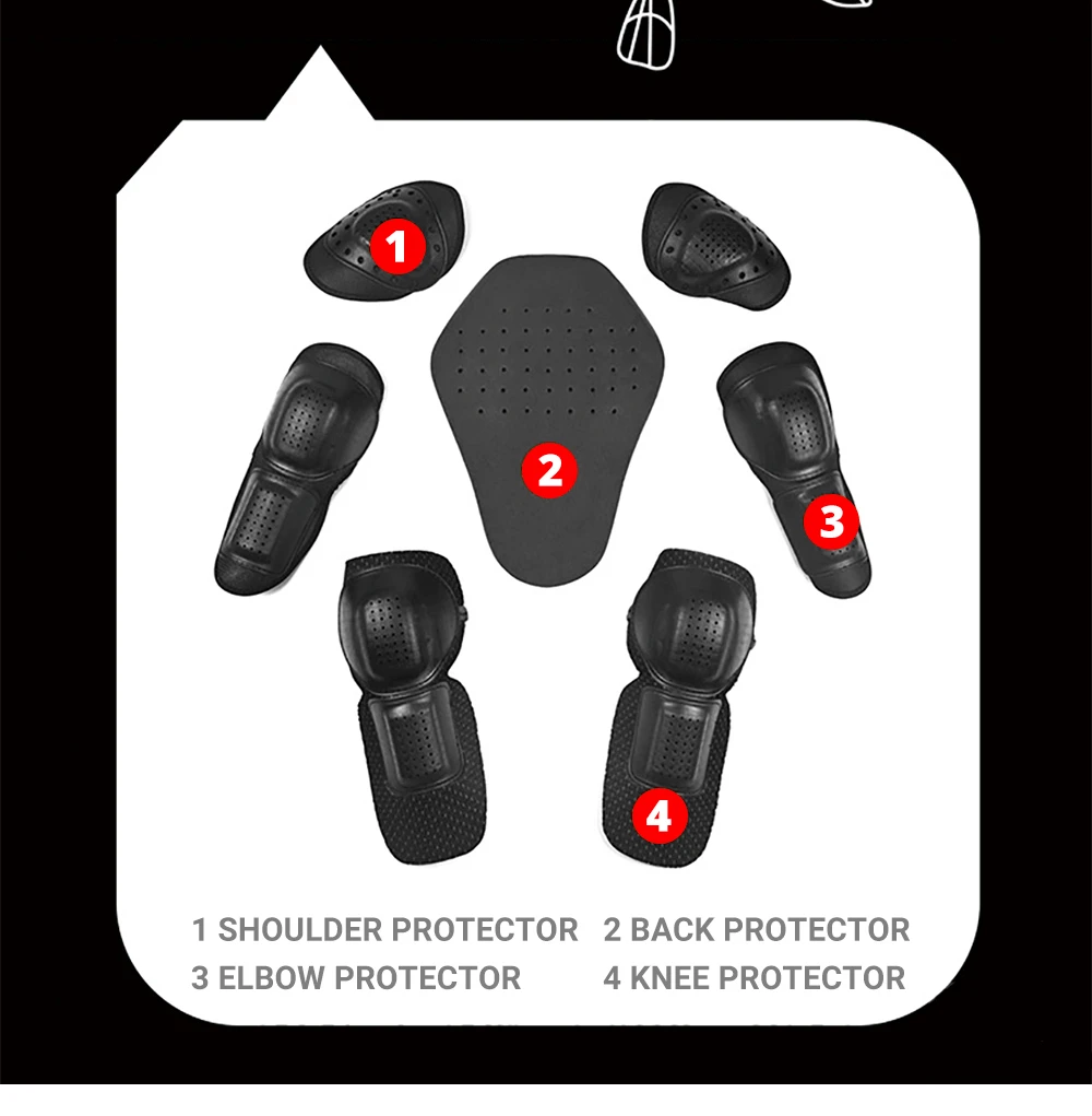 Съемные 5 штук протекторы EVA на спине, плечах, локтях