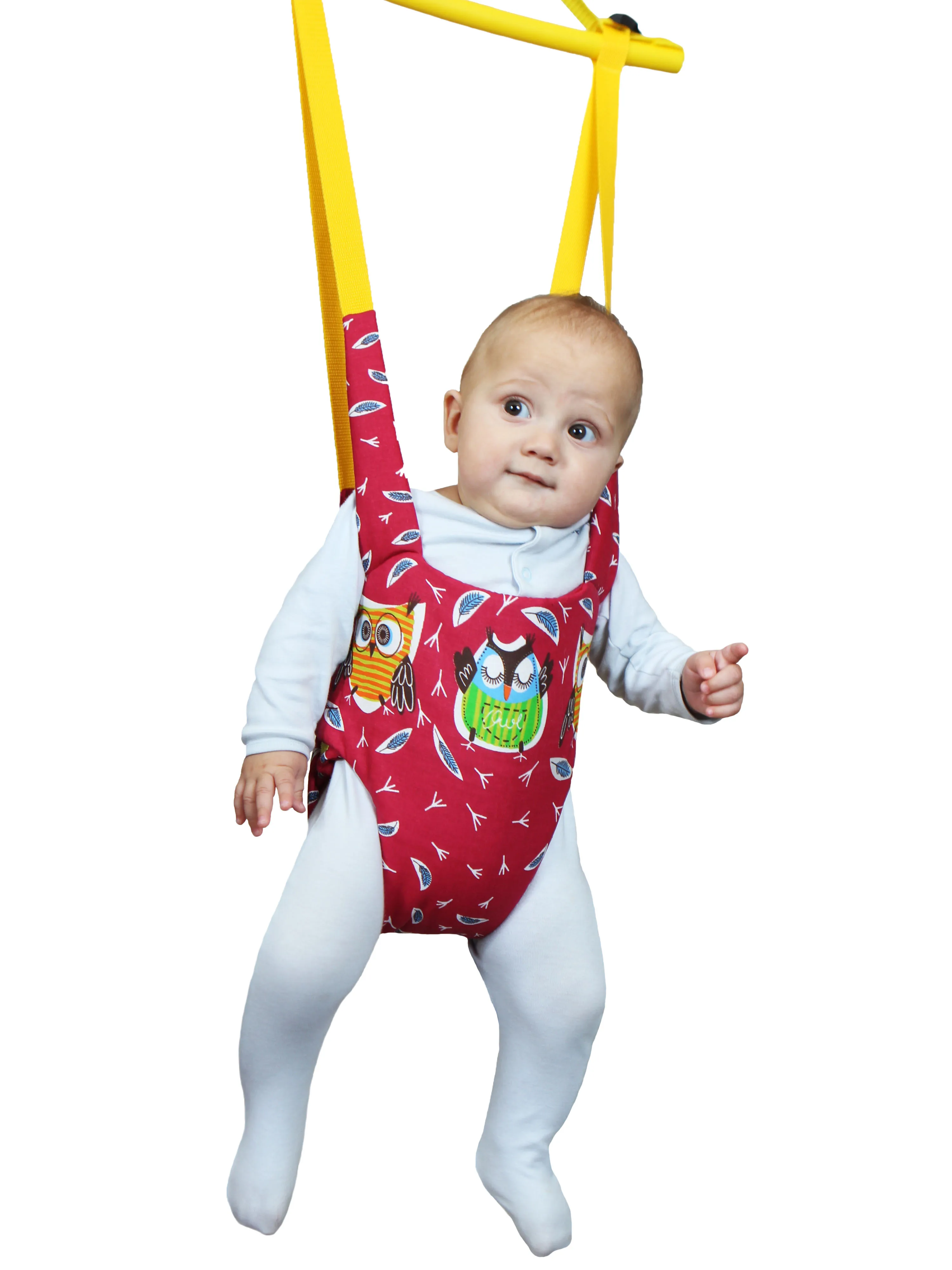 В наших качелях малыш располагается практически вертикально. Это новое для него положение в пространстве очень забавляет малыша. Прыгунки-качели отлично подходят для развития вестибулярного аппарата, для новых игр с мамой и папой. Благодаря пружинно-эспандерному амортизатору, качели легко превращаются в Прыгунки, которые Вы можете использовать, если малыш уже хорошо держит голову и спину и у него есть желание попрыгать. Для этого достаточно ослабить регулировочную стропу и опустить качели вниз, чтобы ребенок касался мысочками пола. Малыш быстро освоит новые движения, укрепит мышцы ног и спины. Это пригодится ему при дальнейших прыжках с дивана и на батуте. Начинать использование тренажера необходимо с малого времени, чтобы мышцы успевали окрепнуть.