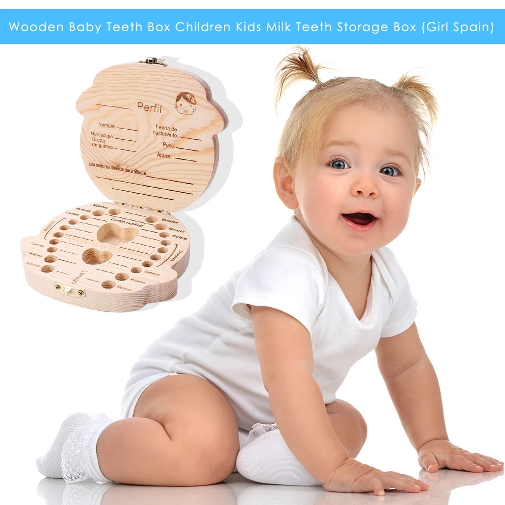 Отзывы о Wood Baby Tooth Box Organizer English Spanish German French Kid Children Milk Teeth Save Storage Lanugo Holder Case Toothbox | Мать и