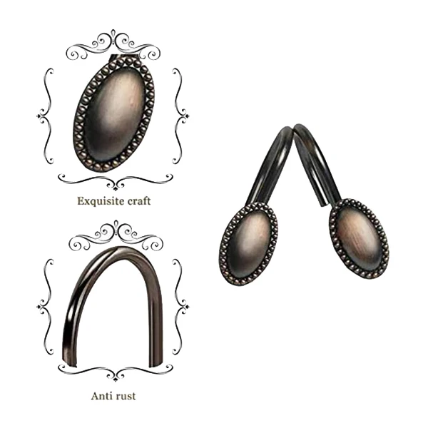 Набор из 12 античных штор для душа, крючки для штор, кольца для ванной комнаты, душевые стержни, крючки, кольца для ванной комнаты