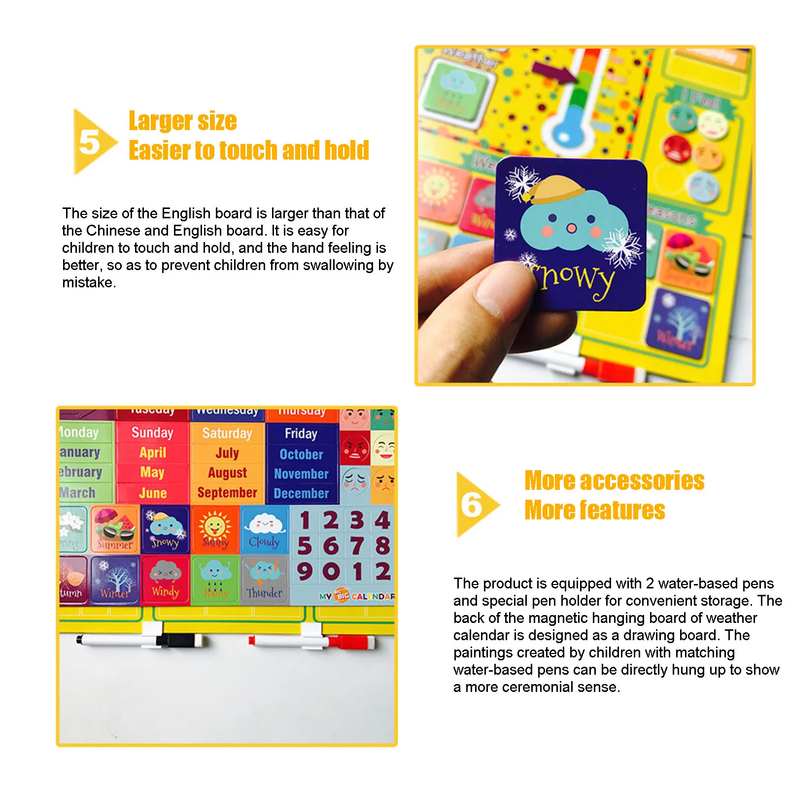 Дети английский Магнитный Погодный календарь инновационный первый календарь игрушки для детей раннего образования