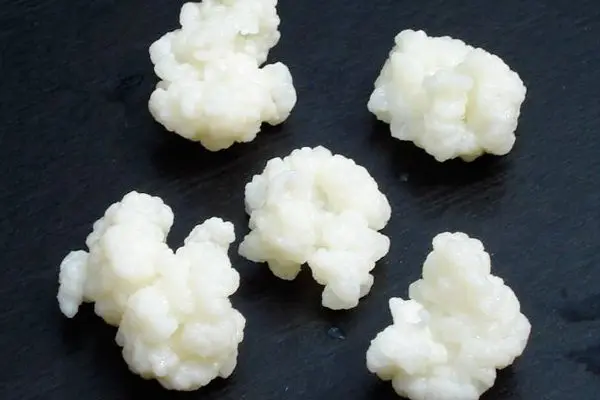Бутилированный кефир дрожжи в чистой воде и в спящей фазе. Перед первым брожением Вымойте кефировые дрожжи в бутилированной воде. Затем вылейте стакан с теплым молоком. Используйте стеклянную банку для брожения. Постепенно увеличивайте количество молока, которое вы добавите в кефир В последующие дни. Убедитесь, что молоко находится при комнатной температуре (25 °C). Среда, в которой вы ферментируете, должна быть темной, вне солнечного света и при комнатной температуре. Время брожения молока составляет 1 день. Натяните ферментированный кефир с помощью пластикового фильтра. Жидкость, которую вы напрягаете,-это кефир. Он имеет слегка кислую и плотную консистенцию, похожую на пахту, и имеет уникальный запах. Вы не сможете ферментировать кефир более 3 дней, фильтровать его, мыть его чистой водой и положить в холодильник с водой. Вы можете сохранить новые дрожжи кефира, которые вы получили таким образом в течение 3 недель. Если вы хотите сохранить его дольше. Промойте кефир, напрягая его и Аккуратно удалите влагу бумажным полотенцем. Добавьте достаточно молочного порошка, чтобы закрыть дрожжи и положить его в морозильник. Таким образом, вы можете хранить дрожжи до 1 года.