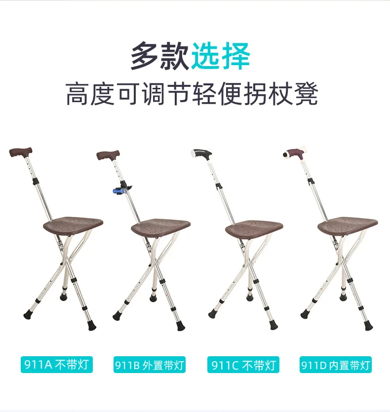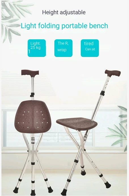Алюминий сплав с регулировкой по высоте, тростниковый стул для пожилых людей, Портативный/Складная Альпинизм самокат с сиденьем/светильник/Dexterous/3 с хлопковой прокладкой