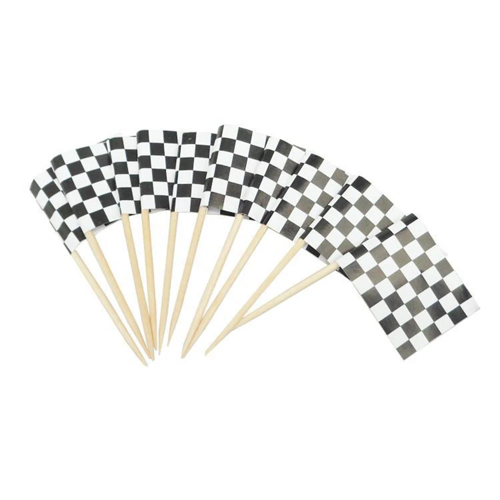 Отзывы о 24pcs Racing Flag Toothpicks Checkered Picks Appetizer Fruit Sticks for Cocktail Party - Black and White New | Дом и сад