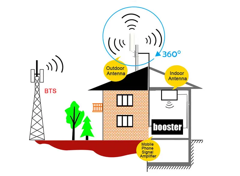 1. Наружная антенна получила сигнал от сигнальной вышки. 2. Затем через кабель отправит сигнал на внутренний ретранслятор. 3. Ретранслятор принимает и улучшает сигнал. 4. После этого прекрасный сигнал идет в комнатную антенну через кабель к вашему мобильный телефон.
