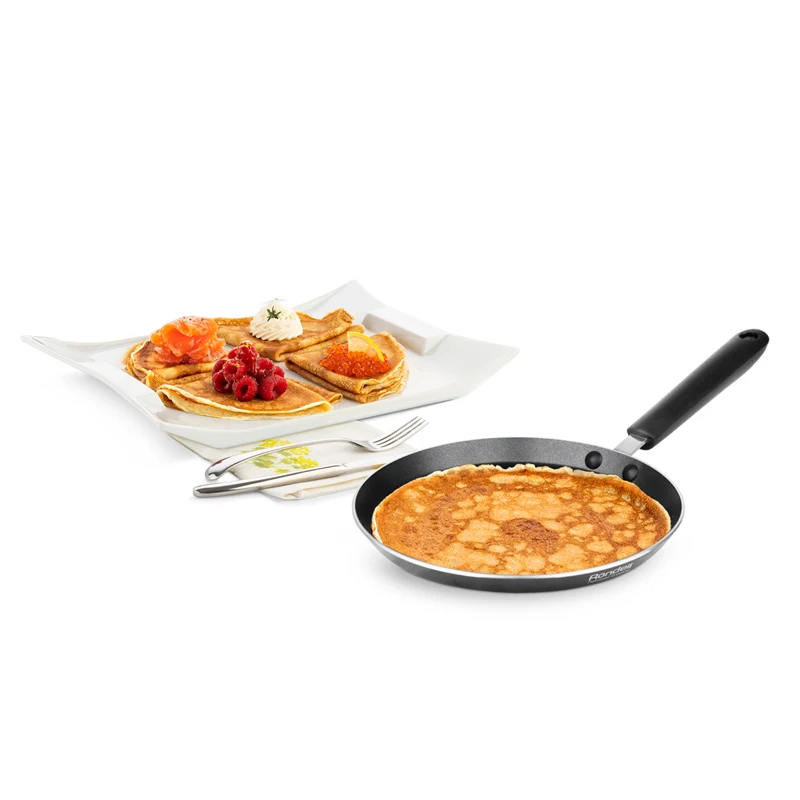 Блины способны выручить в самых разных гастрономических ситуациях. Пышные панкейки подойдут для завтрака, тонкие блинчики с несладкой начинкой, свернутые рулетиками, хороши в качестве закуски, а большие — могут стать основой оригинальных тортов. Поэтому значение правильной посуды для приготовления этого блюда трудно переоценить. Проверьте в деле блинные сковороды коллекции Pancake frypan и убедитесь, что процесс может быть не только простым, но еще и очень приятным. Их внутреннее трехслойное антипригарное покрытие TriTitan® обеспечивает безупречный результат: блинчики не пристают ко дну и легко переворачиваются. Особый комфорт обеспечивают также ненагревающиеся бакелитовые ручки, благодаря которым вам не придется использовать прихватки или полотенца. Следует отметить, что в коллекции есть две сковороды (диаметром 22 и 24 см), которые подходят как для обычных, так и для индукционных плит. И, наконец, стоит обратить внимание на доступные цены, которые, безусловно, порадуют всех любителей кулинарии.
