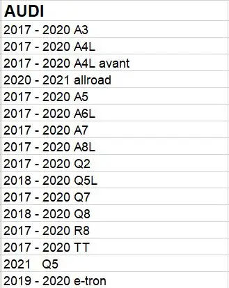 Все модели AUDI с функцией CarPlay могут быть установлены: