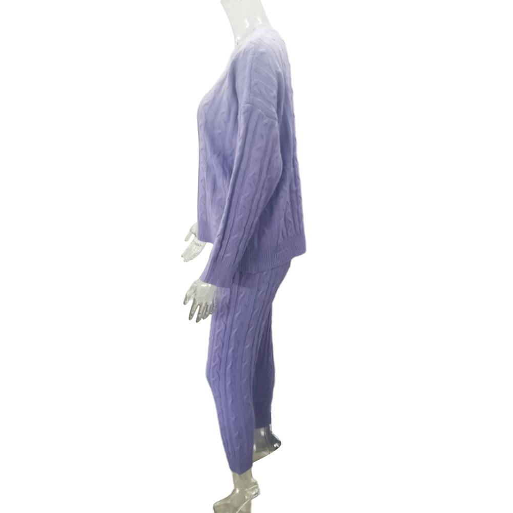 Оптовая продажа; Комплект из 2 предметов; Зимний Однотонный свитер с открытыми плечами и брюки; Женская трикотажная пижама