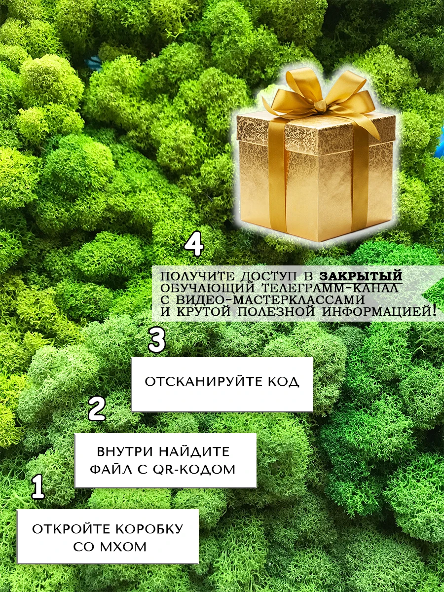 Мы также высылаем нашим покупателям в каждой коробке интсрукцию по эксплуатации и уходу, на оборотной стороне которой есть QR код для подписки на обучающий телеграмм канал с видео уроками как работать со стабилизированным мхом.