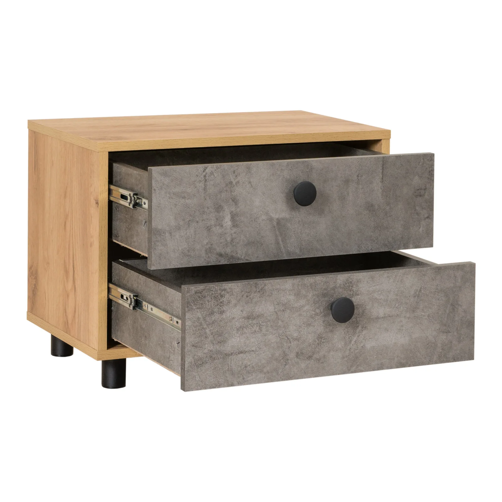 Тумба поможет организовать пространство в спальне в роли прикроватной или в прихожей для хранения всего необходимого для чистки и уходом за обувью. Стильный дизайн станет хорошим дополнением к интерьеру. Комфорт эксплуатации гарантируют бесшумные направляющие с плавным ходом, которые установлены ящиках. Тумба выполнена из ламинированного ЛДСП. Тумба доступна в цветовом решении - Дуб Крафт золотой в сочетании с Камень темный. В комплекте имеется подробная инструкция по сборке.