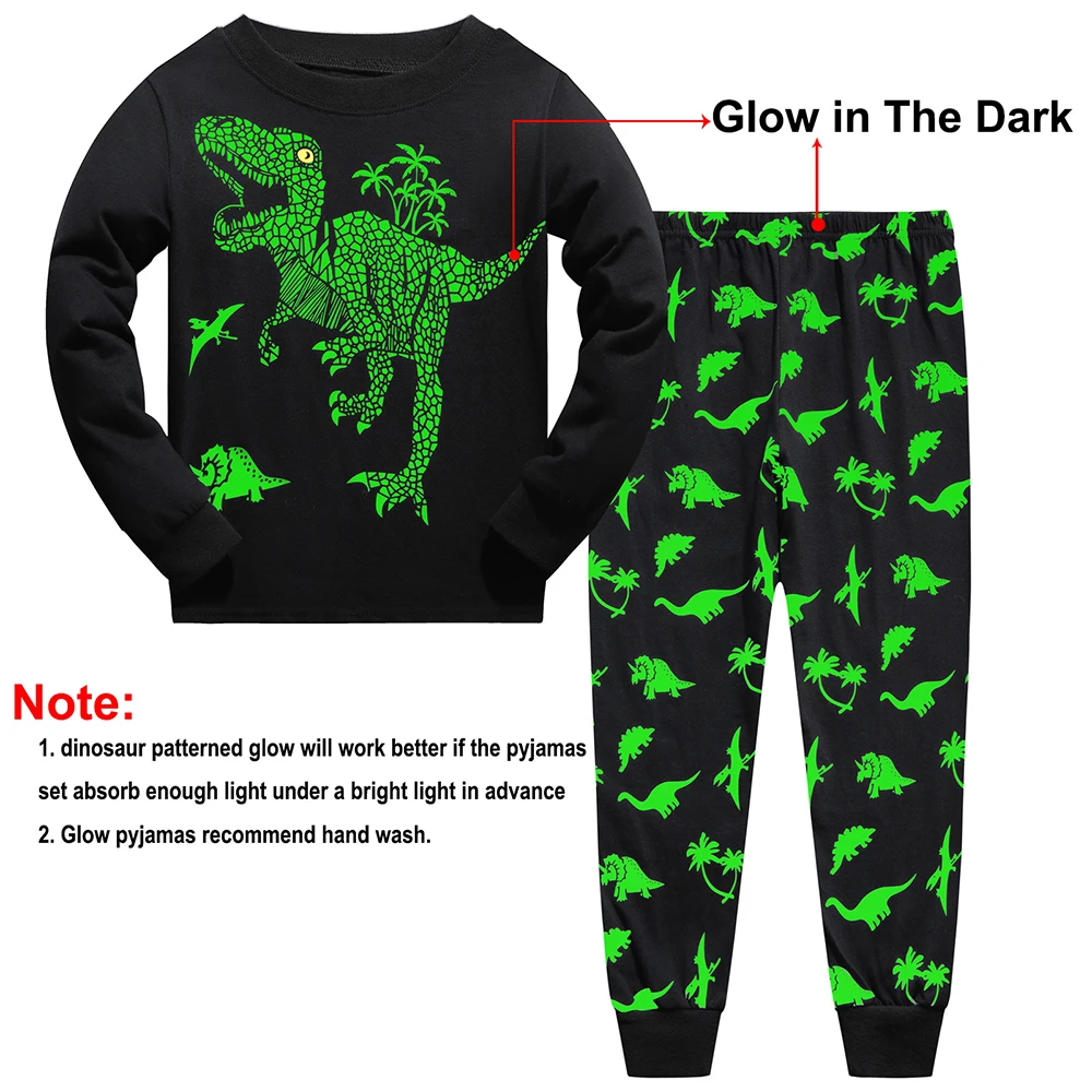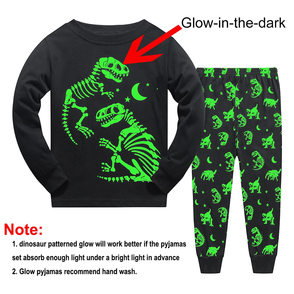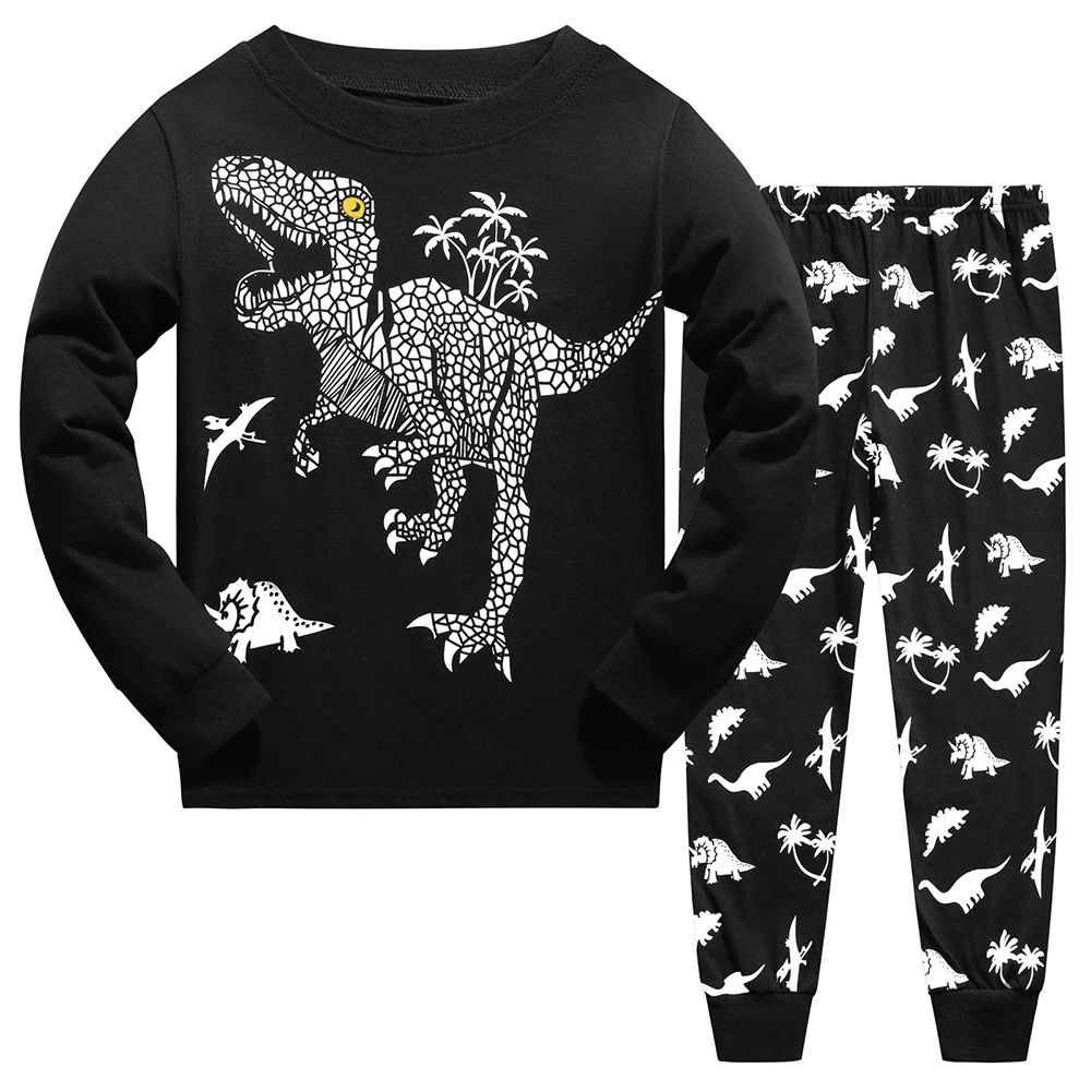 Пижамный комплект для мальчиков, светящиеся в темноте пижамы с динозавром, Детская Пижама с длинными рукавами хлопковая одежда для сна с динозавром детская одежда возраст От 3 до 10 лет