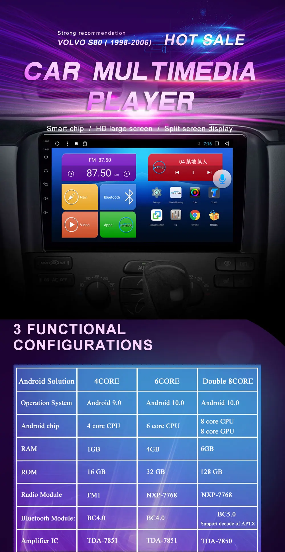 Отзывы о Автомагнитола для Volvo S80 (1998-2006) мультимедийный видеоплеер с GPS-навигацией Android 10 0