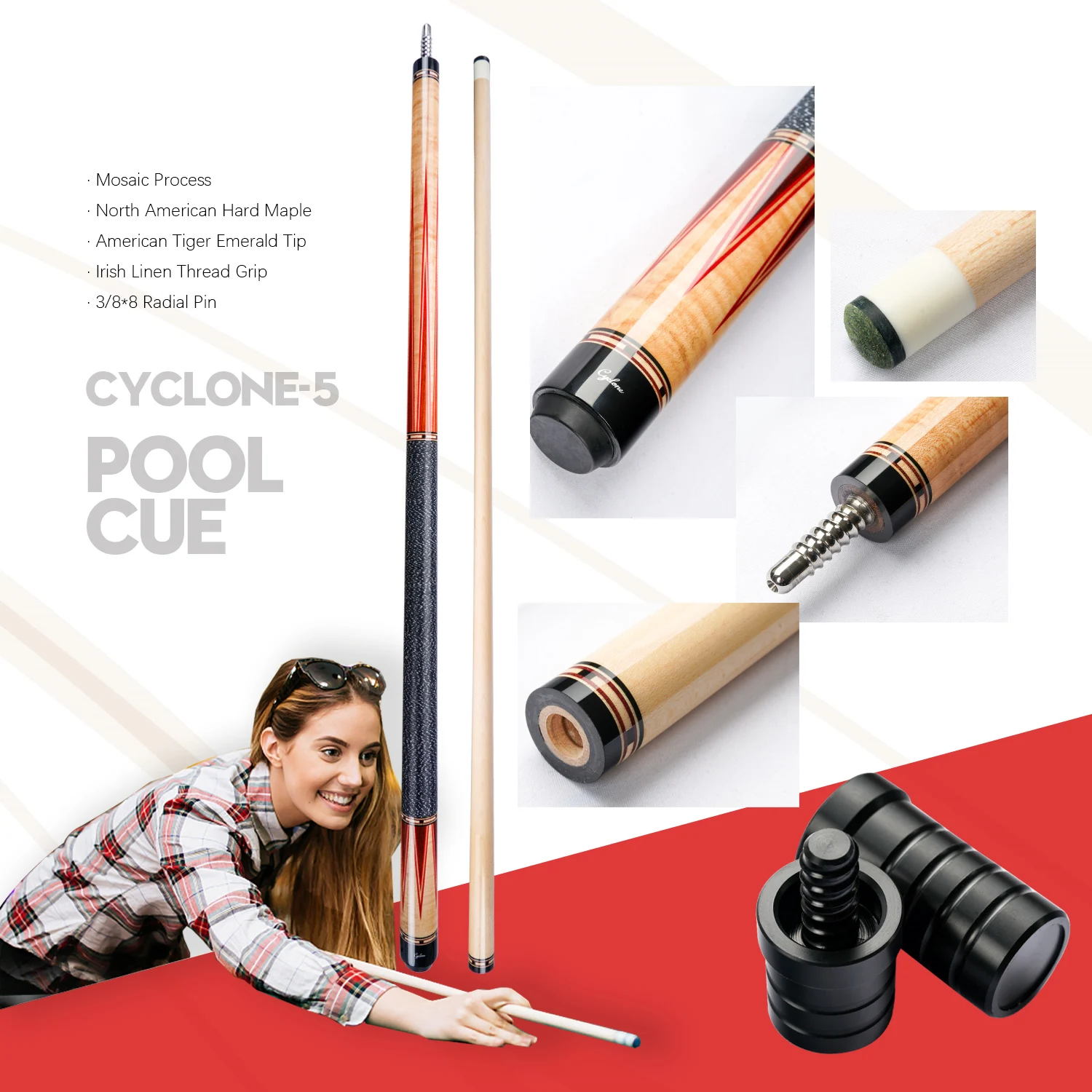 Название: Cyclone-5 Наконечник: XTC Длина наконечника: 147 см структура: 1/2 стиль разделенного кия: 4 вида дерева настоящий вал инкрустации: Канадский клен шарнир дерева: радиальный штифт Вес: регулируемый Вес размер наконечника: 13 мм наконечник: американский Тигр Изумрудный наконечник