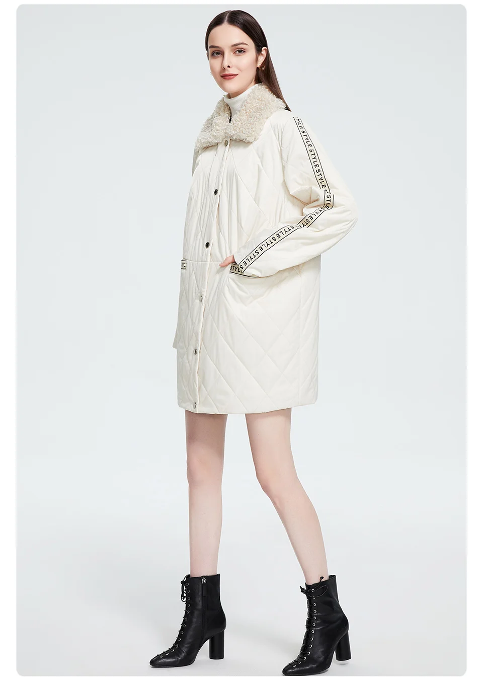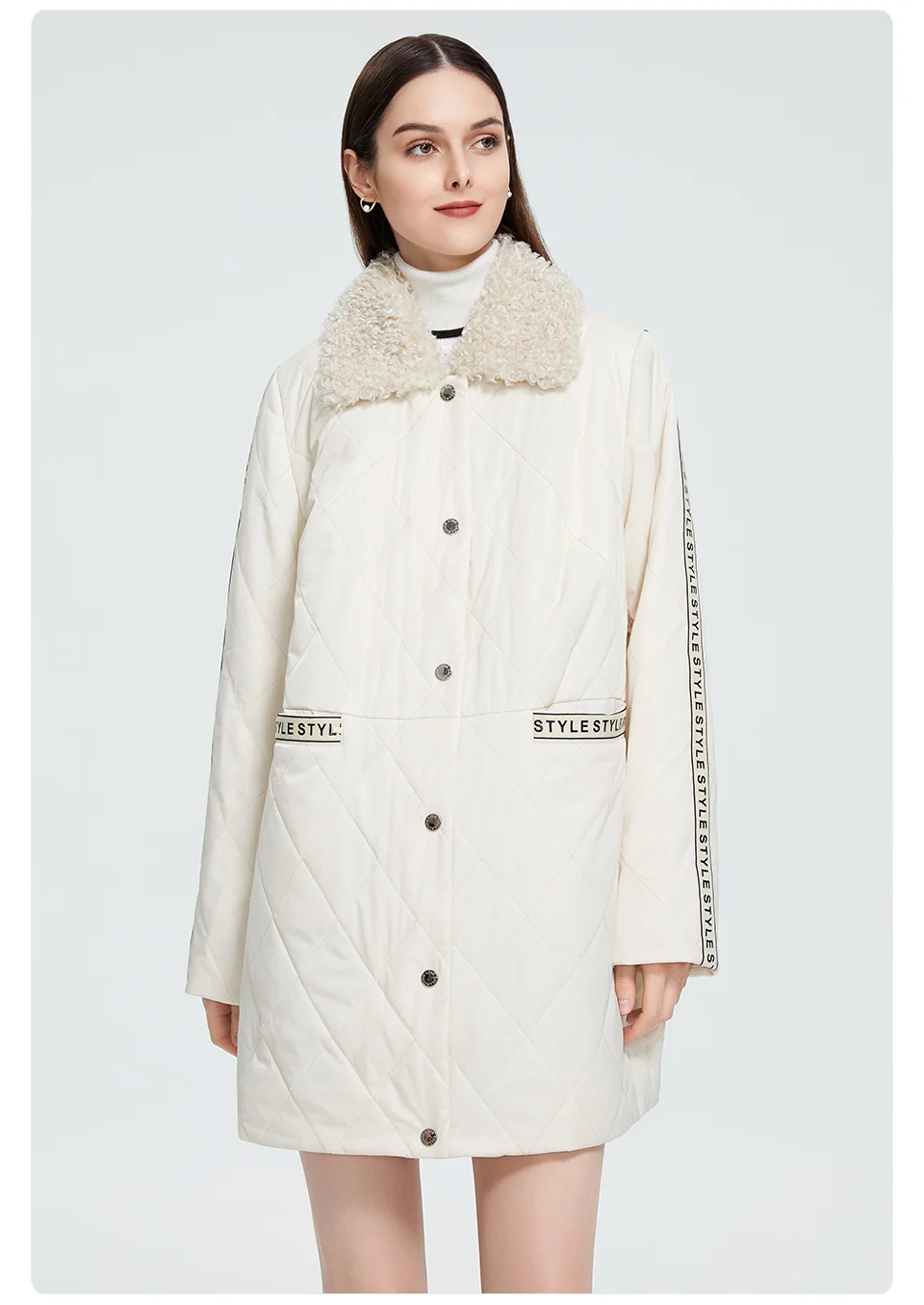 Отзывы о Astrid/Новинка 2022 года Женская Стеганая куртка с мехом на молнии Белое длинное