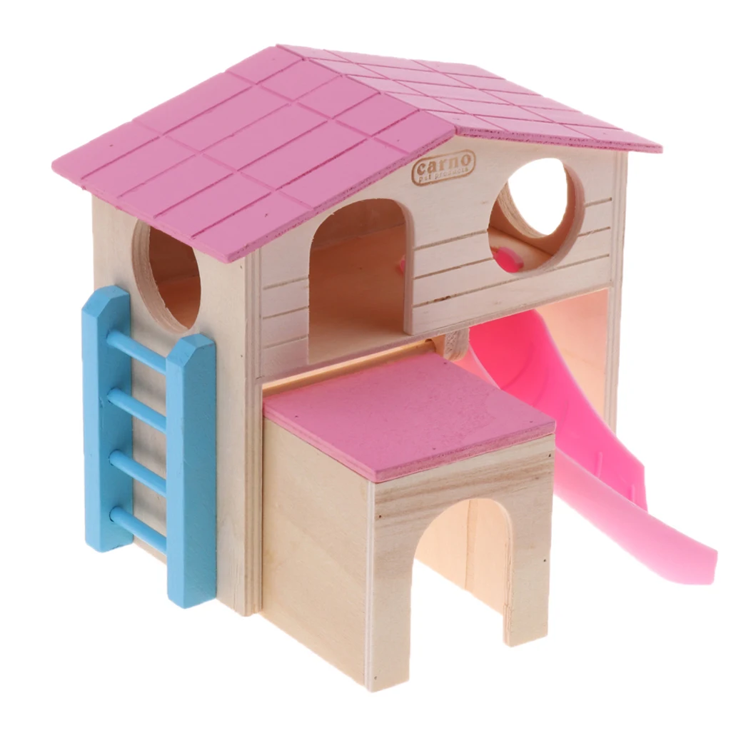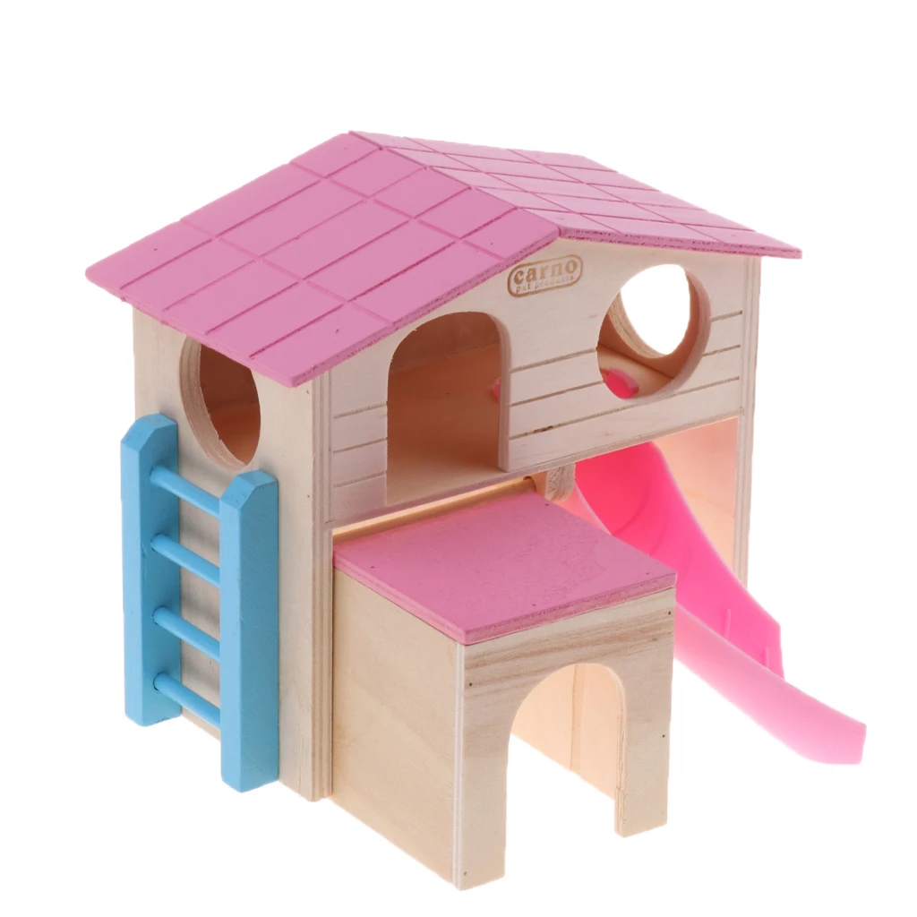 Цвет Фул ПЭТ зверек укрытие дом для хомяка 2 слоя с Лестницы дизайн деревянный
