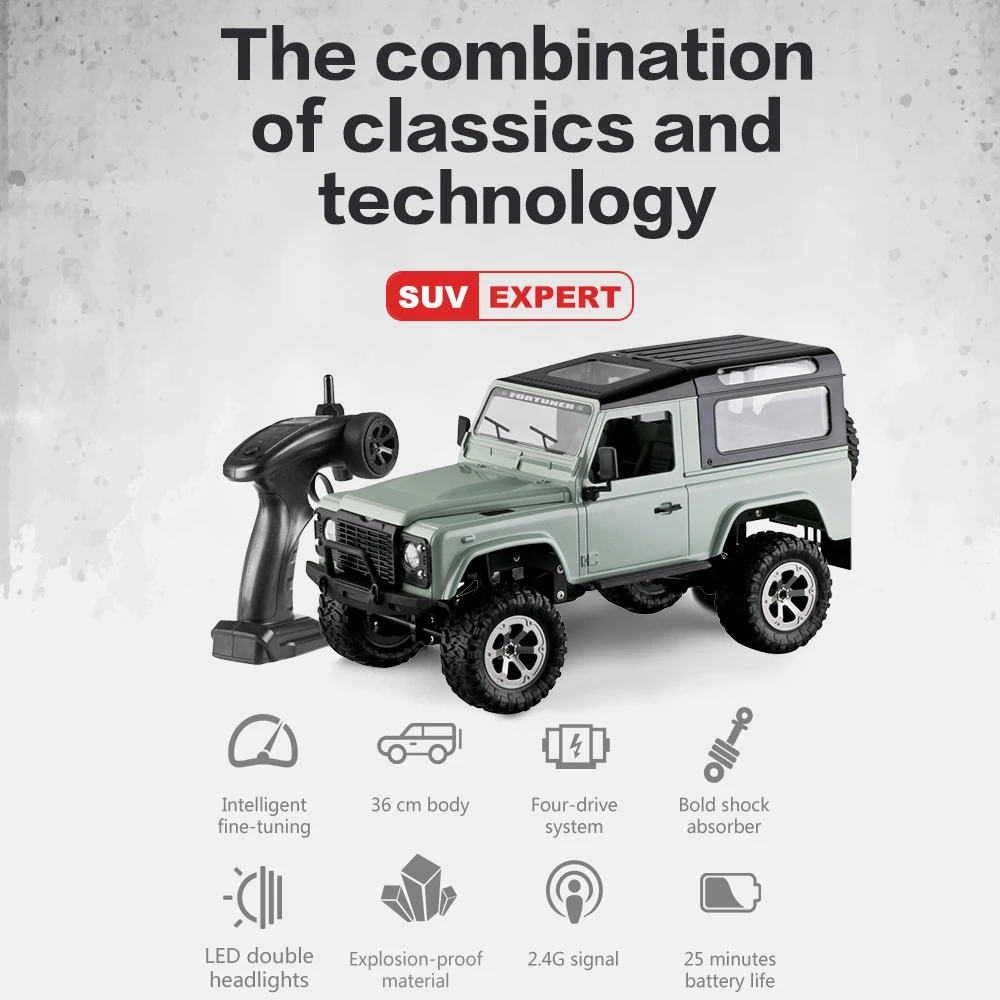 Этот внедорожный внедорожник FY003A очень крутой и красивый, имитирующий Land Rover Defender, очень привлекательный. Наслаждаясь настоящим гоночным автомобилем 1/16 4WD RC, вы можете быстро начать работу и справиться с ним, как с мастером, используя удобный пульт дистанционного управления. Конкурируя с другими продвинутыми любителями радиоуправляемых автомобилей и наслаждаясь захватывающими гонками на вашем заднем дворе, в лесу! Приходите и добавьте его в свой список покупок!