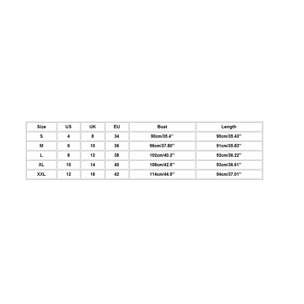 Размеры США Великобритания ЕС Бюст Длина S 4. 8 34 90 см/35,4'' 90 см/35,43'' М 6 10 36 96 см/37,80'' 91 см/35,83'' L 8 12 38 102 см/40,2'' 92 см/36,22'' XL 10 14 40 108 см/42,5'' 93 см/36,61'' XXL 12 16 42 114 см/44,9'' 94 см/37,01''