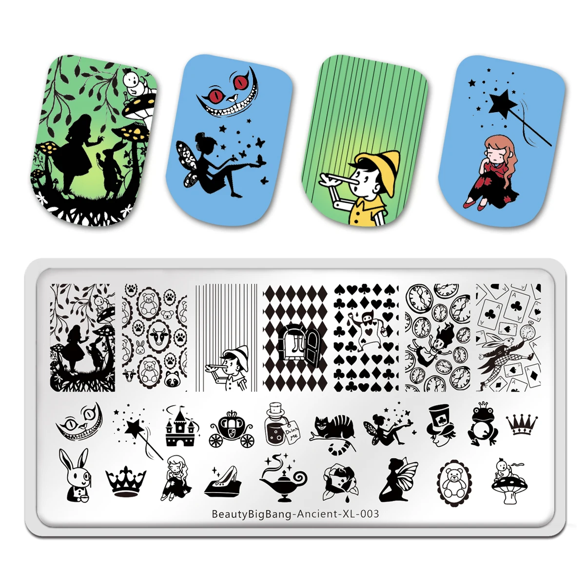 Beautybigbang пластины для штамповки ногтей дизайн кролик Аладдин миф древний XL-003 шаблон печати Трафарет Инструмент для ногтей