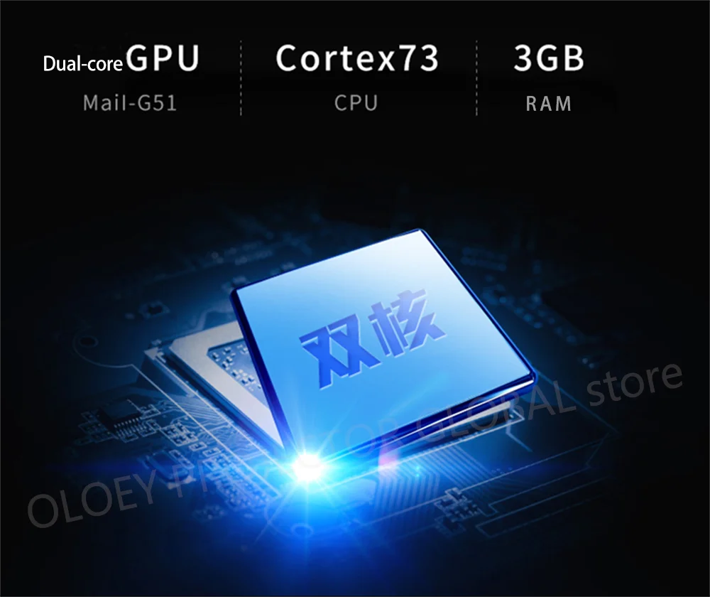 Операционная система: Android 8,0 Процессор: CORTEX 73/2 core CORTEX 53/2 core (1,7 ГГц) Графический процессор: MAIL-G51/2 ядра Встроенная память: 64 ГБ Оперативная память: 3 ГБ