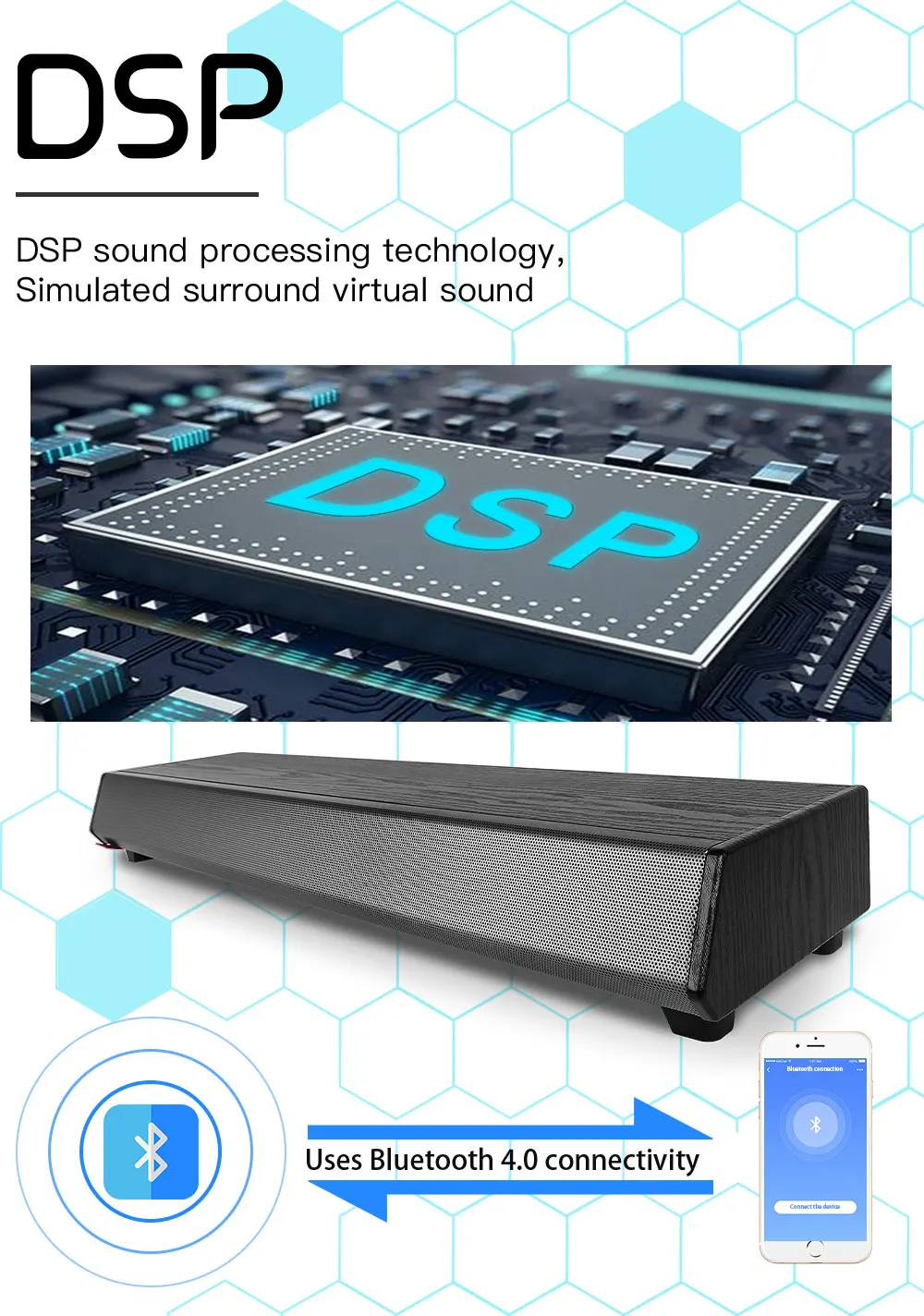 2,1 80 Вт усилитель высокой мощности интегрированный, совершенно новый Bluetooth динамик. Звуковой блок с 5 динамиками, мощный звуковой эффект, создание виртуального объемного прослушивания. Он применяется для мобильных телефонов, компьютеров, телевизоров и поддерживает глобальные ТВ-программы/LIVE/Фильмы/VOD и серии и т. Д. Профессиональная функция караоке позволяет вам петь, когда захотите. Более удобное и эффективное беспроводное соединение Bluetooth.