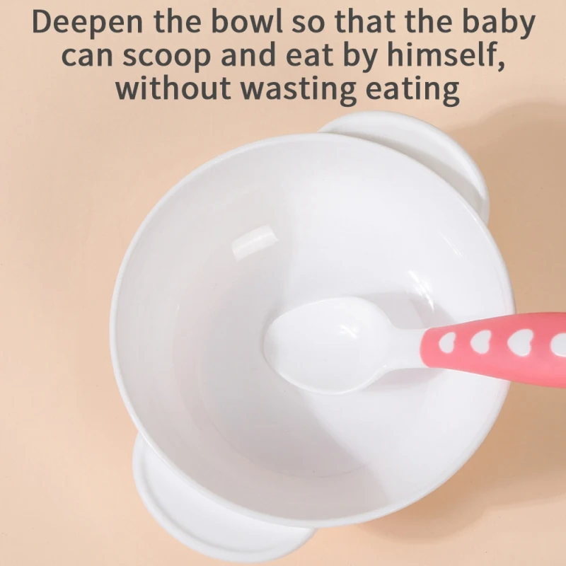 Дно основания чаша всасывания имеет нескользящую конструкцию, которая может эффективно предотвратить перемещение чаши на стол и помочь ребенку съесть с чашей. Сильное основание всасывания на дне чаши может сделать чашу приклеиваться к столу более прочно, эффективно уменьшая вероятность опрокидывания чаши.