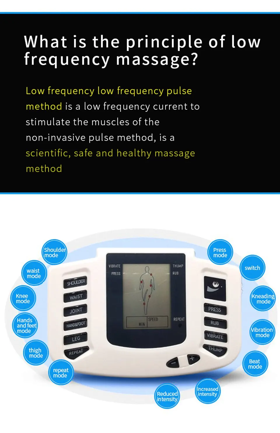 Продукт разработан специально для облегчения боли в мышцах. Аппарат может производить лечебный эффект, особенно для пациентов, страдающих от боли в шее, спине, пояснице и различных суставах. Эксклюзивно подписанная программа состоит из разных волн через altemative cpmposition, что дает ощущение ручного массажа вручную. Мягкий и мягкий Пульс улучшает кровообращение и способствует разблокировке основных и побочных каналов, а также снижает усталость. Используйте импульсный массажер kw305 для: жесткости плеч. Паралич периферических нервов. Восстановление усталости. Улучшает кровообращение невралгии. Постепенное облегчение мышечной боли
