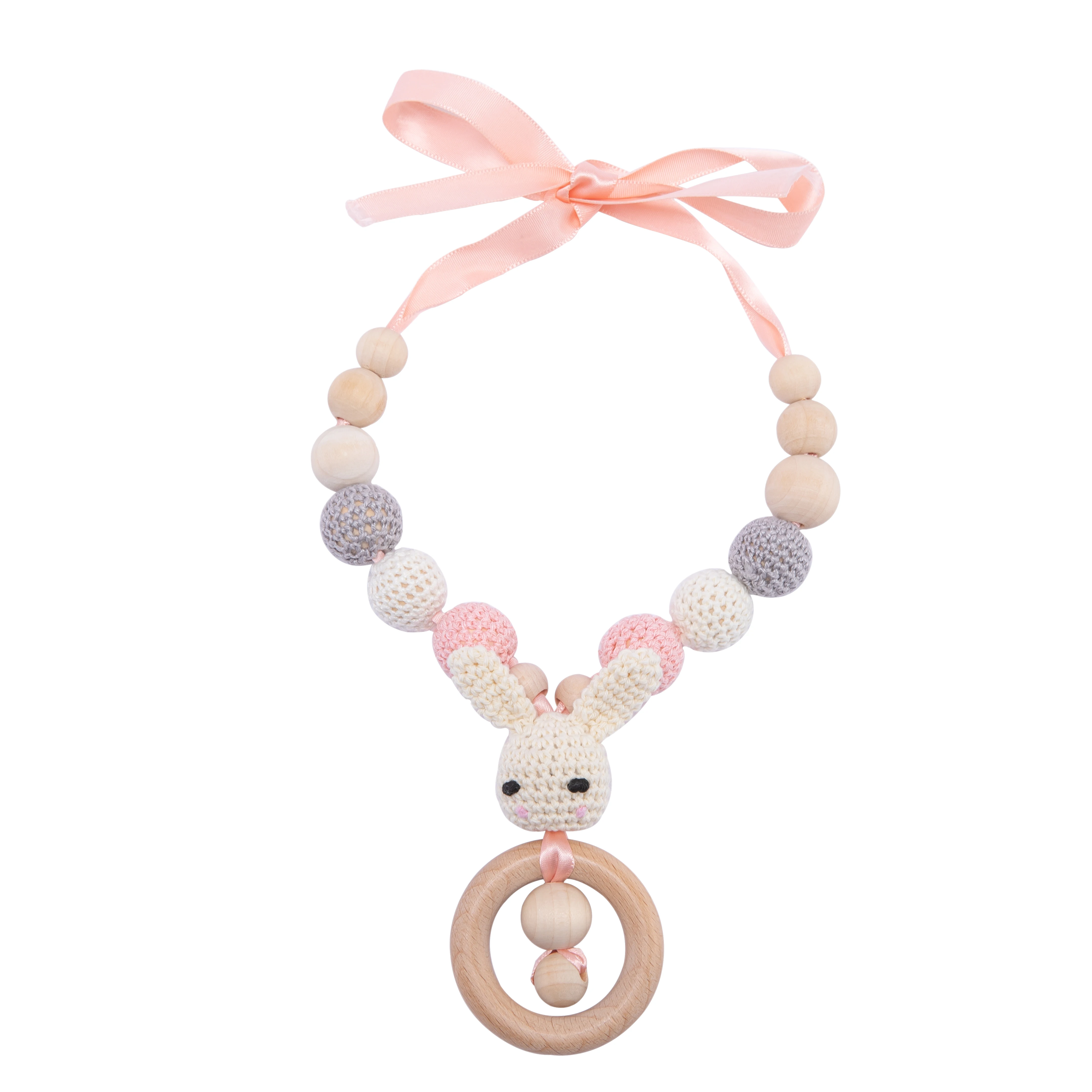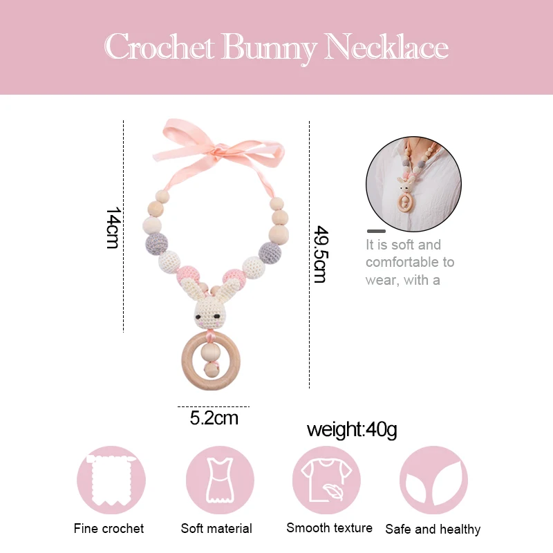 Милый кролик крючком бусы Прорезыватель ожерелье деревянный Прорезыватель аксессуары для медсестер подарки Монтессори игрушки для новорожденных цепочка для прорезывателя