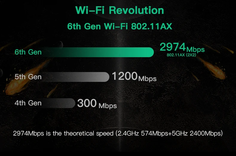 Скорость до 2400 Мбит/с (маршрутизатор должен быть на 160 МГц)(802.11ax);