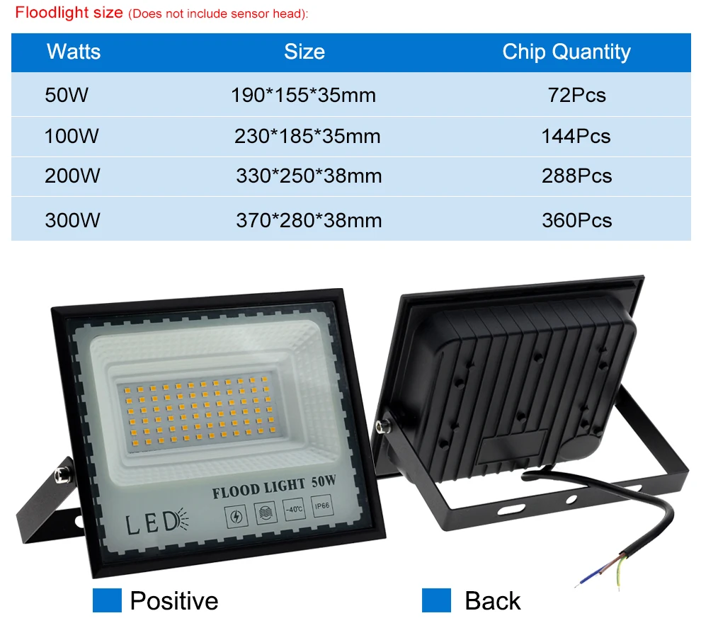 Люмены:(30 Вт) 2700LM / (50 Вт) 4500LM / (100 Вт) 9000LM/ (200 Вт) 18000LM