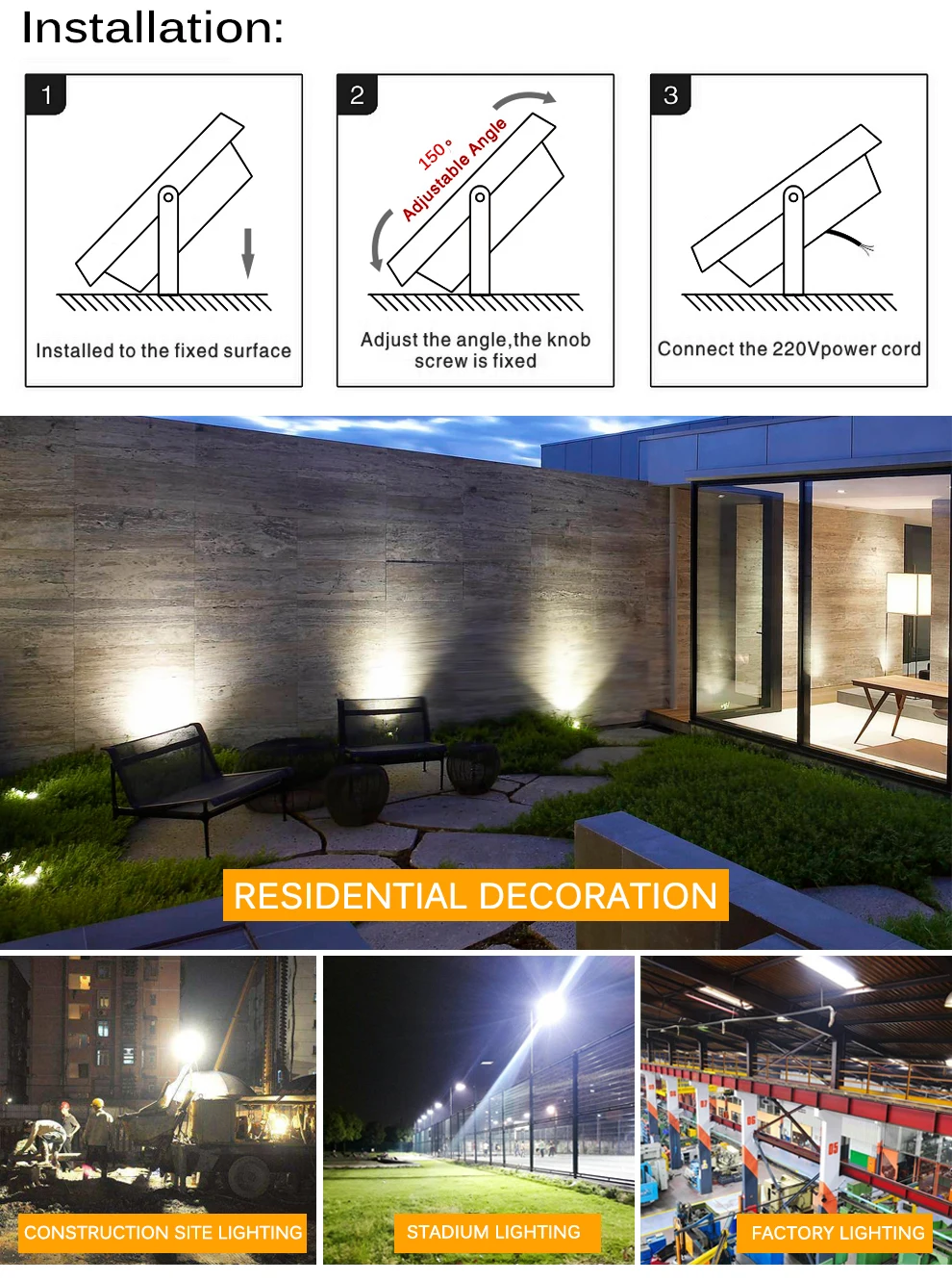 Использование:Наш светодиодный прожектор может использоваться на дорогах, садах, мостах, билбордах, улицах, парках, деревьях, гостиницах, жилых украшениях и многого другого!