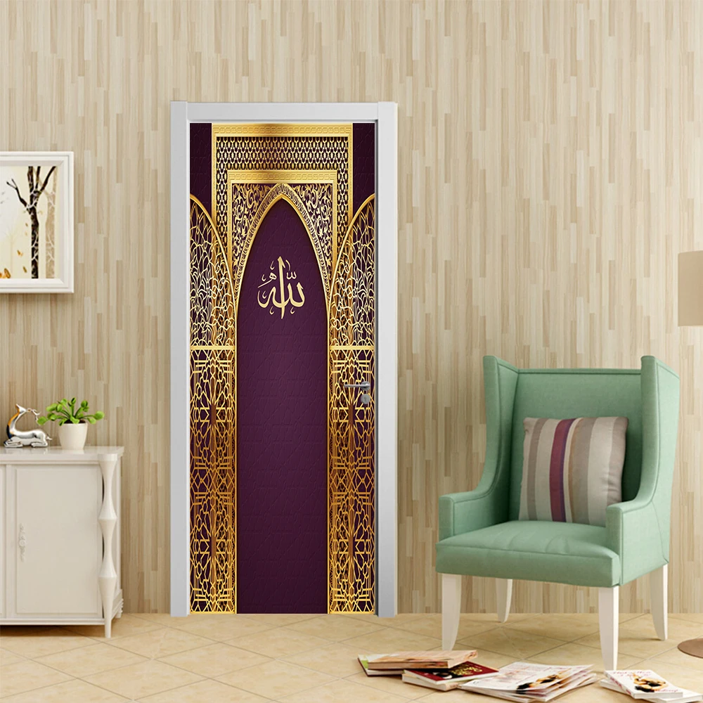 Мусульманский Аллах металлическая дверь DIY Дверь Наклейка украшение дома Наклейка на стену Спальня наклейки для кухни на стены пилинг & Наклейка Виниловые обои
