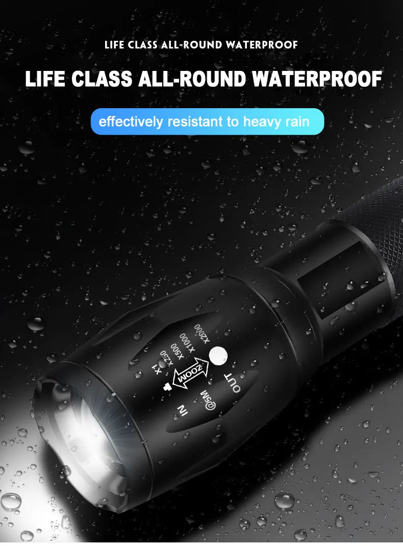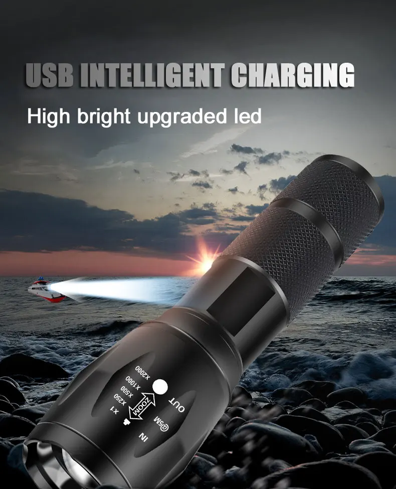 T6 Ультра яркий масштабируемый светодиодный фонарик USB Перезаряжаемый уличный охотничий фонарь 3 шестерни 18650 ручной фонарь для кемпинга