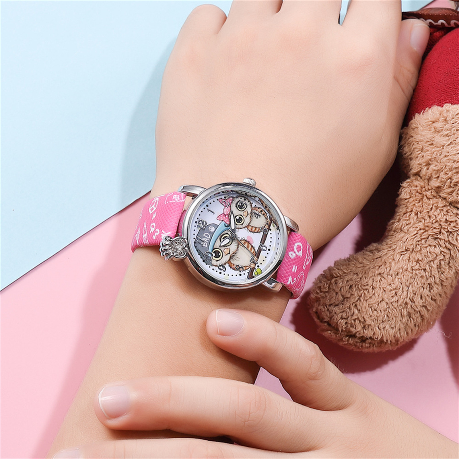 Модные детские часы с пряжкой из мультфильма, ослепительные Детские сетчатые часы с ремешком, детские часы с 3D тиснением Совы X5