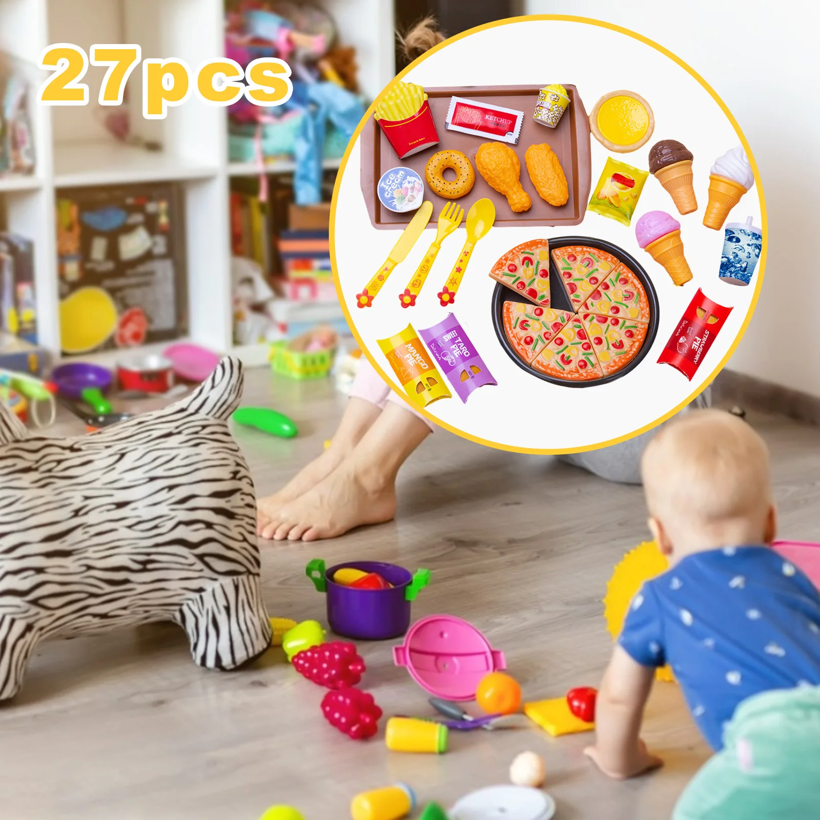 1 набор кухонных игрушек (27 шт., 6 пицц, 2 тарелки, 3 конуса, 1 попкорн, 1 картофель фри,