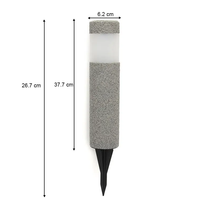 Спецификация: Материал: пластик + смоляный песок Солнечная панель: 2V50mA поликремний Источник питания: Ni-MH AA600mAh 1,2 V аккумуляторная батарея Светильник, цвет: белый светильник Уровень защиты: IP44 Тип источника: светодиодный светильник Напряжение: 1,2 V Продолжительность освещения: 6-10 ч Использование сада/уличной лампы/двора/газона