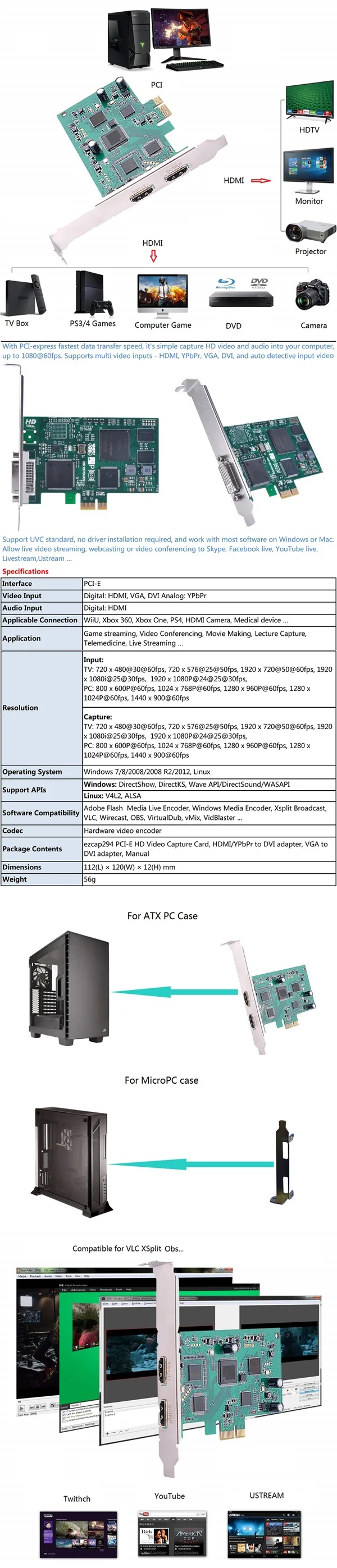 Карта видеозахвата PCI-E HD, захват и трансляция игрового видео в реальном времени, разрешение до 1080p60, для windows OBS Studio