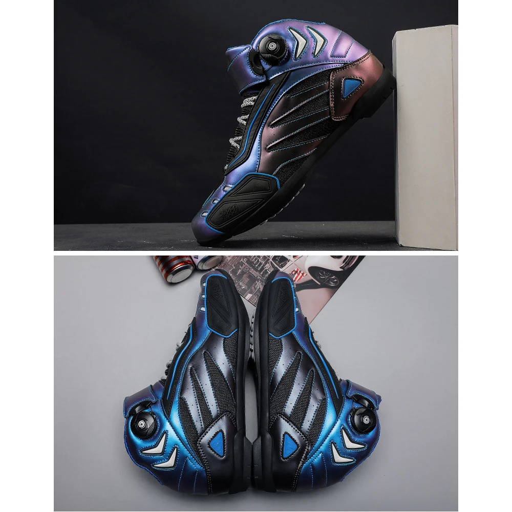 Отзывы о Фиолетовый мотоботы Нескользящая мото Сапоги для верховой езды Мотокросс